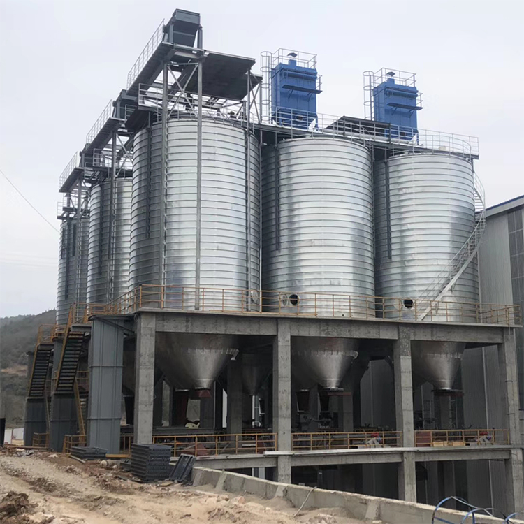 接收与清理设置在筒仓中央该形式筒仓一般采用对称排列,提升机井架固定,经过提升后的物料通过仓顶溜管进人筒仓。这种形式省去了仓顶输送设备和上通廊,从而节省了建造费用,缩短了建造工期。对于贮存时间要求较长的大型粮库,则应根据物料的流向、场地情况、工艺要求等合理地配置投料口、工作塔、烘干塔及随州钢板仓的位置。国华钢板仓介绍了这几种常见的进料形式,实际中可将各种形式相互组合,相互渗透,根据实际情况合理搭配,灵活选用。